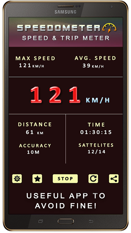 The ultimate advanced GPS Speedometer App is an advanced speedometer application that uses the phone's built-in GPS system to show your current, maximum and average speed, total distance, and time traveled. Suitable for running, car driving, biking, bicycle odometer, speeding, auto speed control or hiking. Track your top speed, average speed, time, distance, the velocity with accuracy. It’s the most accurate speedometer kilometer, speedometer odometer, speedometer recorder, speedometer reader, speedometer app for mobile, tablets etc.