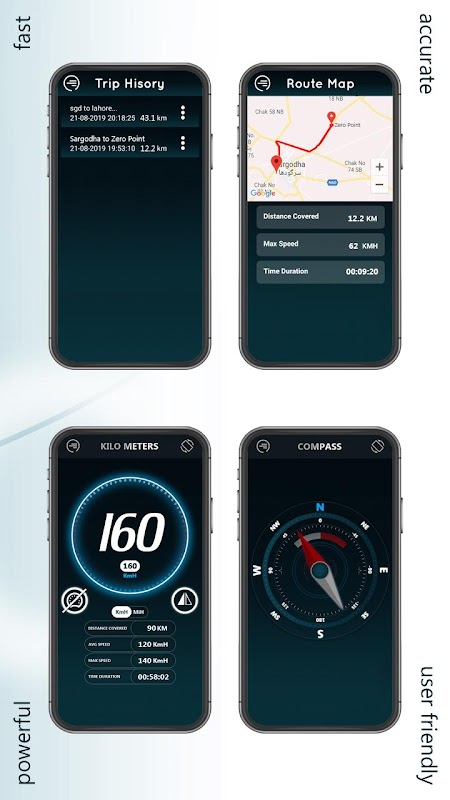 Het kompas helpt u terwijl u naar andere landen en vreemde gebieden reist. Routevinder maakt het erg handig voor u om de kortst mogelijke route naar uw bestemming te vinden. Met de functie Afstandsvinder kunt u de exacte pinpoint-afstand tussen twee punten op de kaart vinden. Dankzij de landschapsmodus lijkt het meer op een echte realistische snelheidsmeter voor auto's. De snelheidslimietwaarschuwing van deze meter houdt u onder de ingestelde snelheid en helpt u veilig te rijden. Deze meter is speciaal gemaakt voor de gebruiker van deze applicatie.