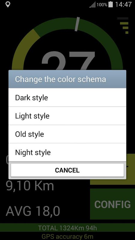 Configuration options will allow you to maintain or not the display on while the application is running. You also can change screen color scheme according to your needs or preferences.