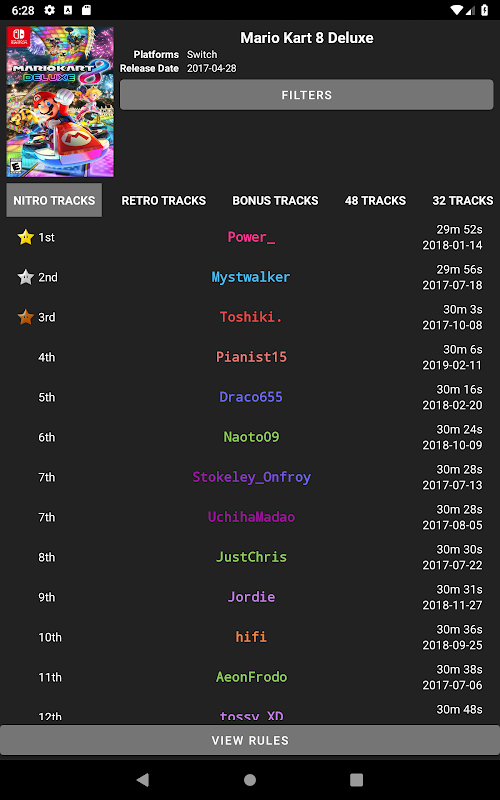 • Charts/statistics for games, players, and all leaderboards. Including world records.