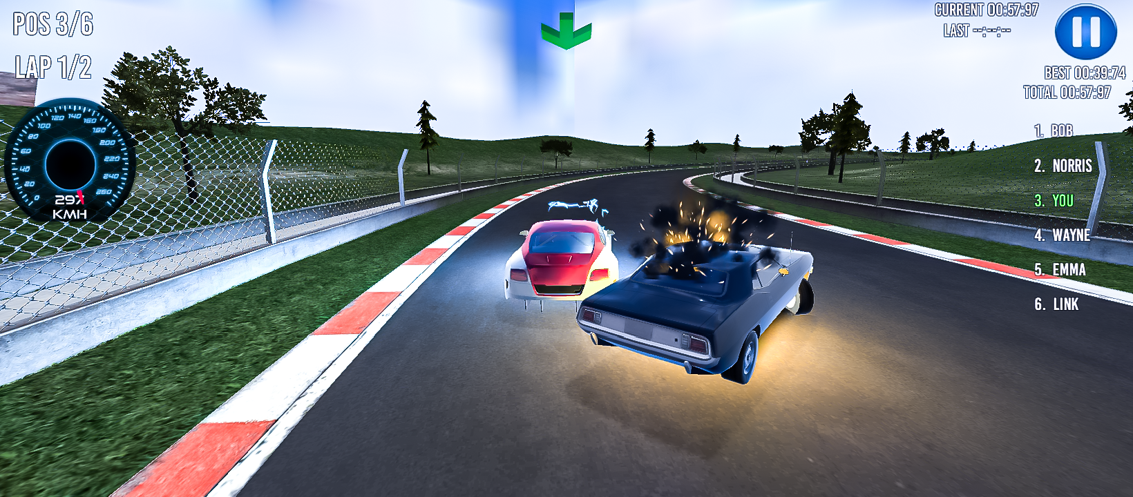 🥇 Hoor mij brullen: wie heeft er muziek nodig als je het gebrul van krachtige motoren, het gieren van banden en het knarsen van botsend metaal hebt? Geniet van de rijke geluidswereld van SpeedWay, naast eenvoudige maar opvallende graphics en spectaculaire crasheffecten die je botten doen schudden elke keer dat je van de baan af draait of tot stilstand komt.