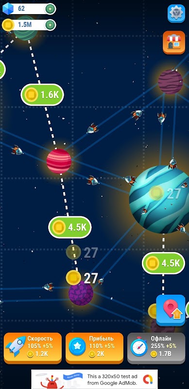Connect planets with space lanes, earn money, upgrade skills, explore the huge open galaxy.
