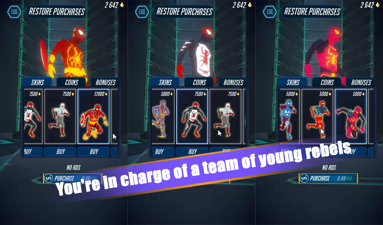 10 playable characters are available to unlock. Improve their skills to create the perfect team. upgrade jet engine costumes, flying shoes .You can also customize their colors.