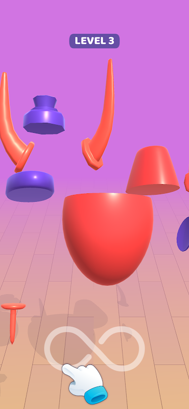Each level begins with different parts of something. Drag your finger across the screen to rotate them! Solve the puzzle by rotating the figure in all directions and on all planes until you hit the sweet spot.