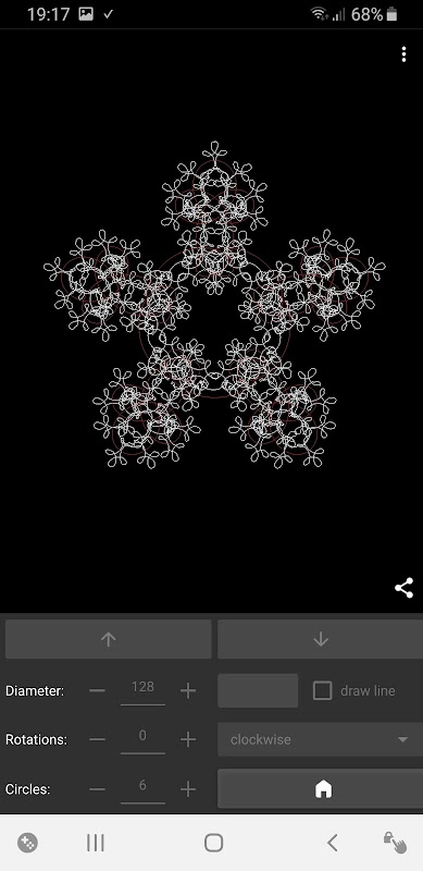 Herinner je je de spirograaf nog? Nu kunt u spirograafachtige tekeningen maken. Stapel maximaal tien cirkels op elkaar. Laat ze om elkaar heen draaien en kijk hoe ze gekke spiralen tekenen.