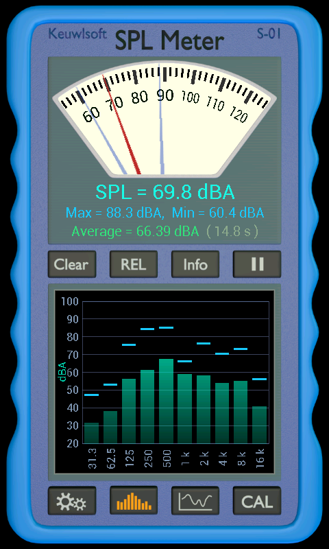 Met een gemiddelde van SPL, Clear en Pause knoppen.