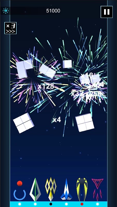Purchase new spaceships with your rewards and form a team of 6 ships to fight the blocks.