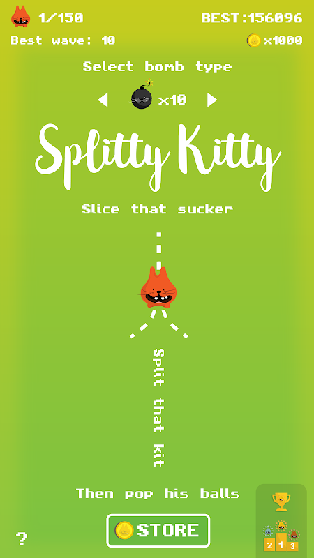 Swipe to split a kit, then tap to pop. Unpopped balls turn back into kitties, try and clear the screen as more kitties fire on.