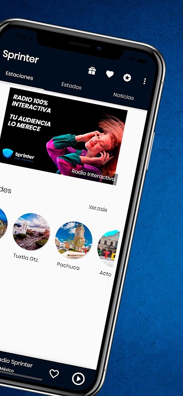 Het is niet genoeg om streaming te spelen, Sprinter is een volledig dynamische applicatie. Nieuwsfeed, moderne en gebruiksvriendelijke speler, realtime chat met cockpit, meerdere stations uit meerdere steden, slimme meldingen, sociale netwerken, stadsevenementen, games, podcasts, topmuziek, weer en nog veel meer functies. Een 100% interactieve en unieke radio-app.