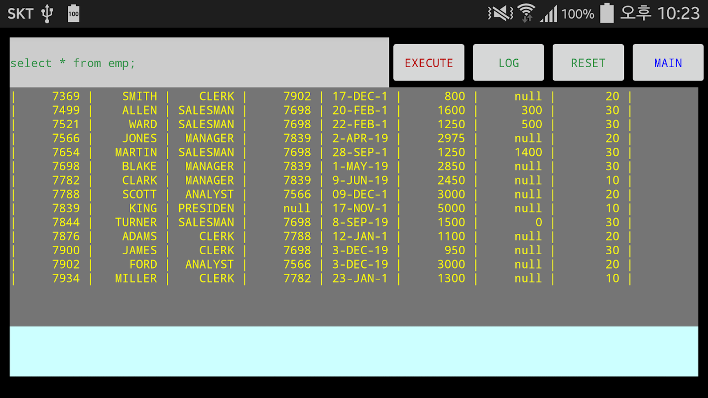 U kunt een tabel maken en gebruiken, zoals "select * from emp;".