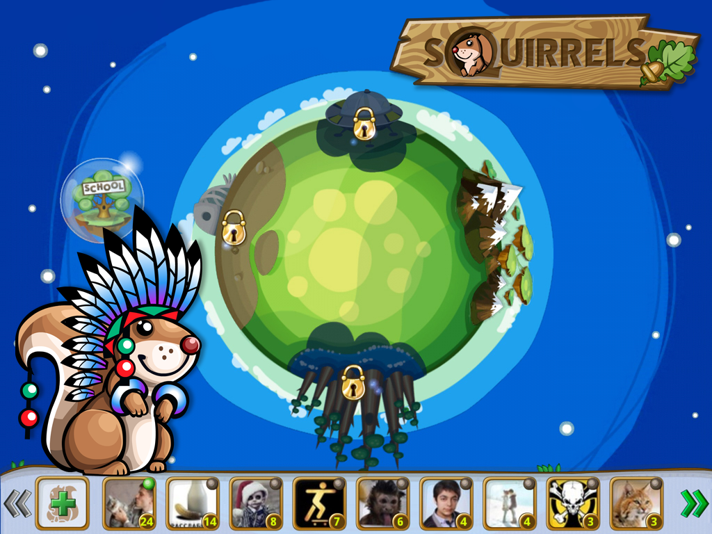 You will be on a constant hunt for acorns – in the mountain high, in the ocean blue and in the volcano heart. But you will never be alone, dozens of other squirrels will be by your side as a Wise Old Shaman helps you to stay alive... more or less.