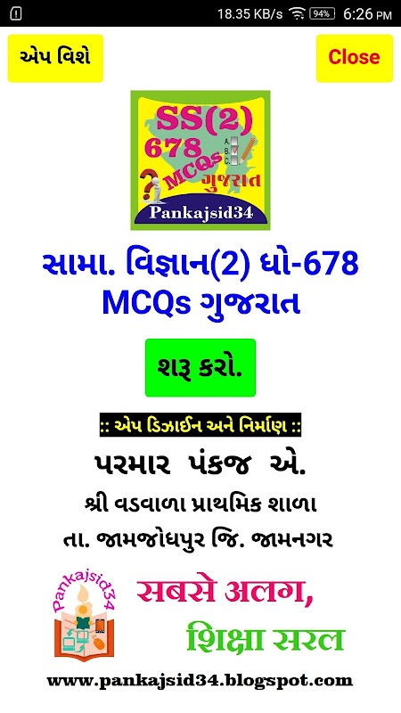 Pankajsid34 presenteert de Gujarati Quiz Android-app voor Social Science Subject of Std.-6, 7, 8 Second Sem (Old Course). Sterfuncties van de app worden hieronder gegeven.