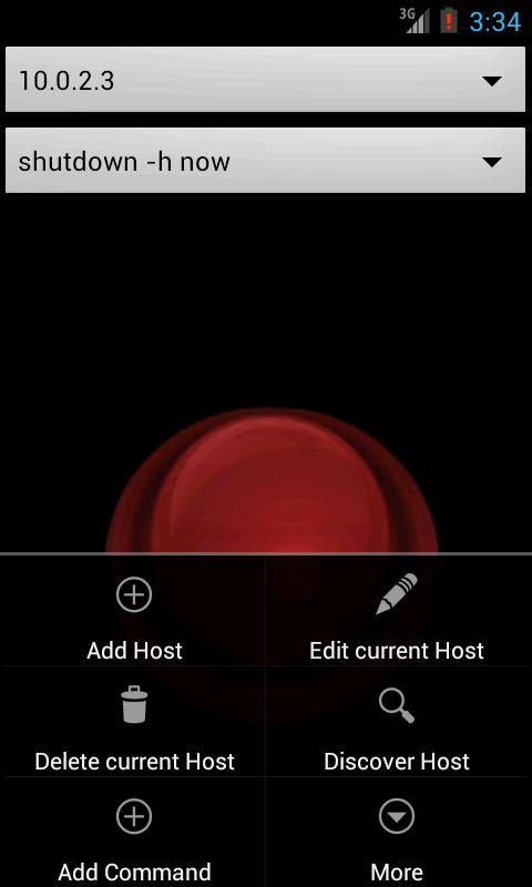 SSHutdown heeft een super eenvoudige gebruikersinterface. Het opzetten van je gastheer en de overeenkomstige opdracht die u wilt uitvoeren en druk op de grote rode knop.