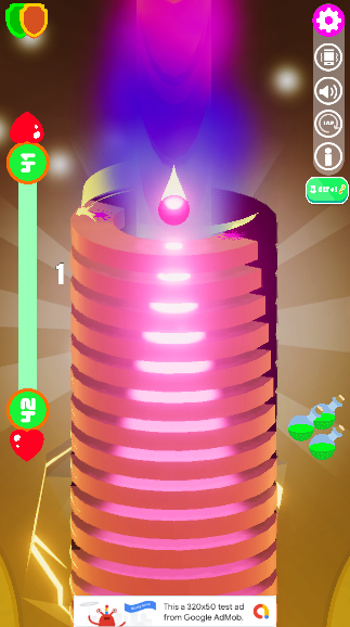 Your ball smashes like a brick through random colorful platforms that block its descent, but if you hit a black one, it's all over and lose coinns ! Your ball shatters to pieces and you have to start your fall all over again.