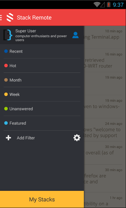 Stack Remote is a dedicated android app for the Stack Exchange sites (Stack Overflow, Super User, Server Fault, Stack Exchange, User Experience, Gaming and related websites)