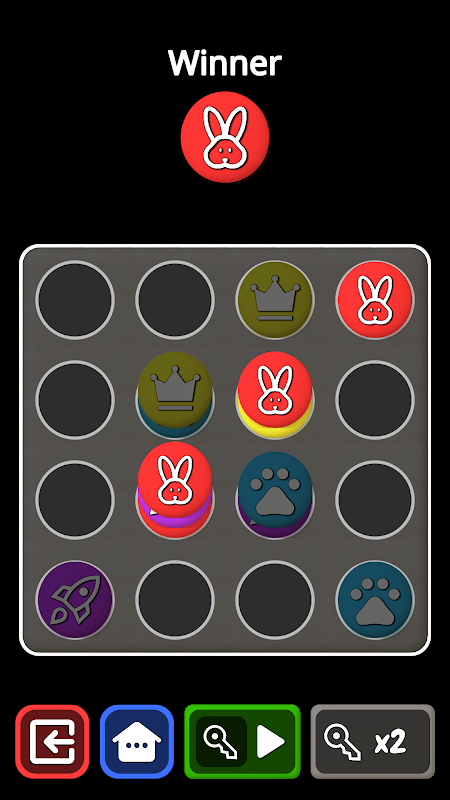 On a 4x4 grid board, up to 4 players compete using 16 stones each. The goal is simple: stack, flip, and move your pieces to form three in a row. The first player to do so wins.