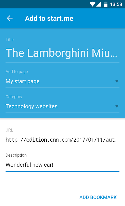 - Links bewaren met behulp van de standaard Android "Share" -functionaliteit