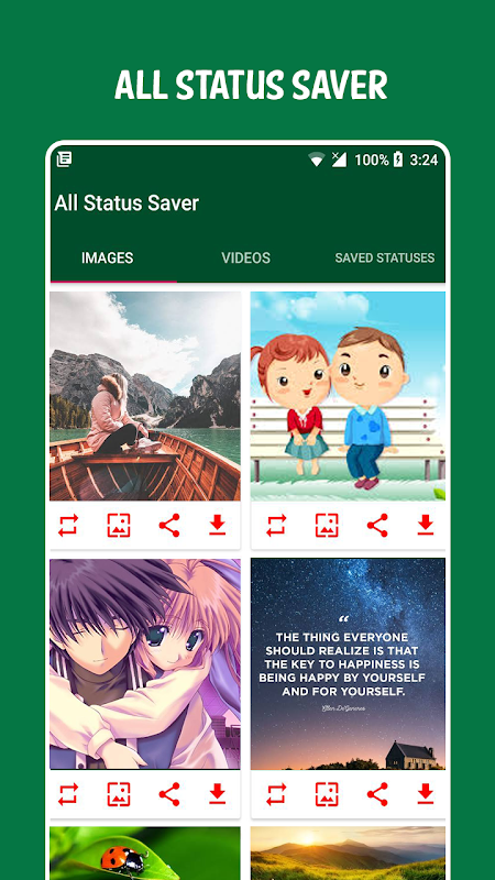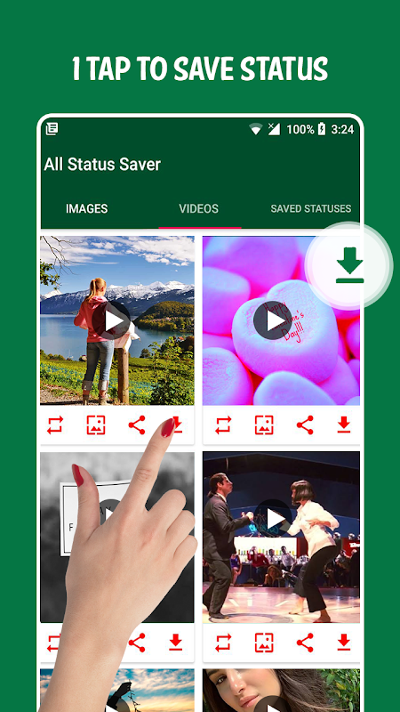 Story Saver bewaar bedrijfsstatus, deel, verwijder en stel in als achtergrond.