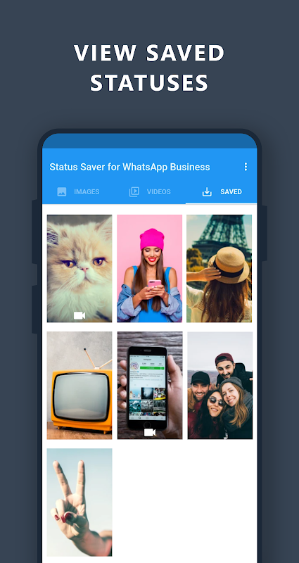 De Status Saver voor WhatsApp Business-app helpt je om video's, afbeeldingen en GIF op te slaan.
