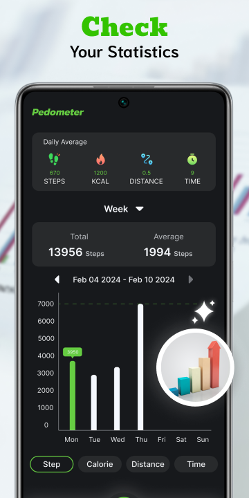 Gepersonaliseerde statistieken: Duik diep in uw fitnessvoortgang met uitgebreide statistieken en grafieken die uw stappen, afstand, verbrande calorieën en meer bijhouden. Analyseer uw prestaties en blijf gemotiveerd!
