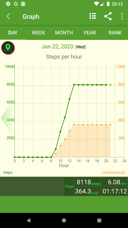 De dag ・ week ・ maand ・ jaar ・ De rangorde van het opgenomen aantal stappen wordt weergegeven als een grafiek. ("Rang" geeft de top 50 dagen weer in geregistreerde stappen.)