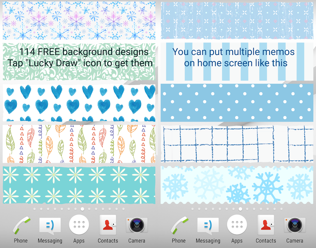 3. Tik op de widget "Memo Ocean Free" en houd deze vast. Je ziet afbeeldingen van elk startscherm.