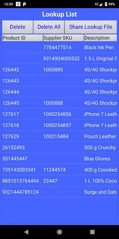 U kunt uw opzoekbestand, ook wel itemlijst genoemd, in de app downloaden, de app herkent dan de streepjescodes wanneer ze worden gescand en geeft hun beschrijving weer. Als een item niet wordt gevonden in het opzoekbestand, kunt u het toevoegen en het telrecord opslaan.