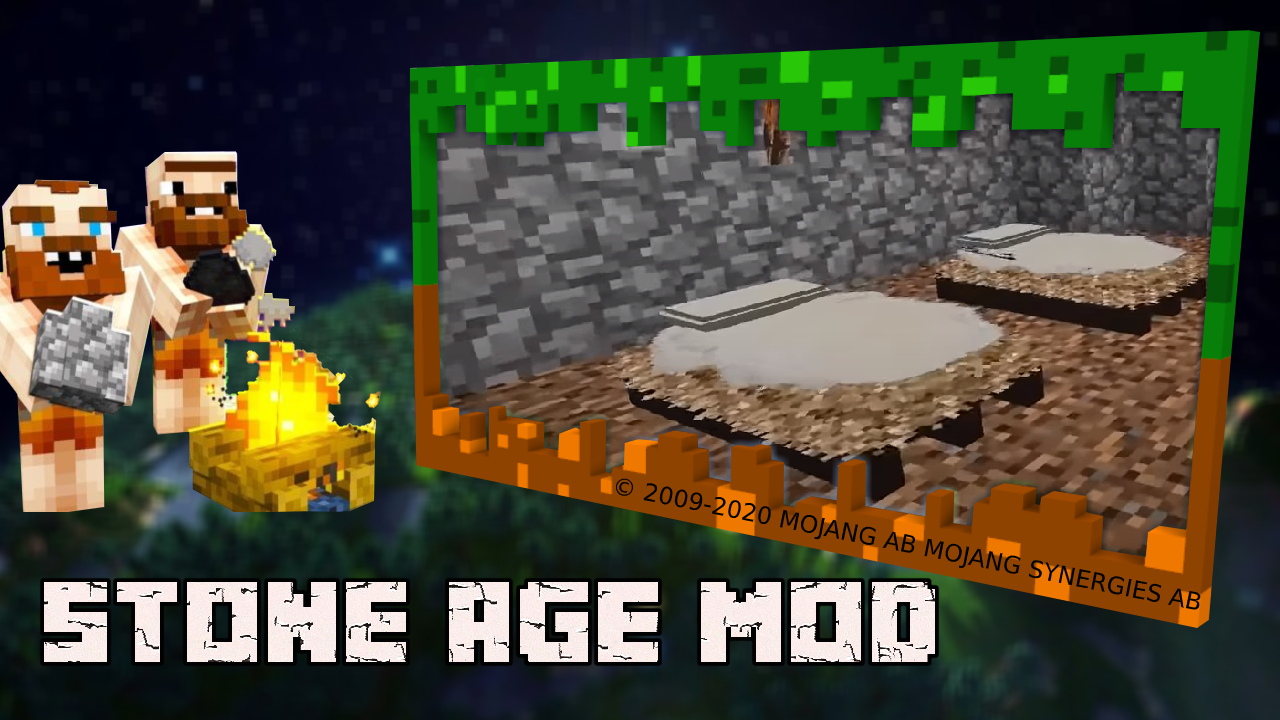 Met Stone Age Mod kun je in de tijd reizen. Deze mod is een soort teleport naar de wereld van mammoeten en primitieve mensen die nog steeds niet begrijpen wie hun vrienden zijn. Ze zullen je aanvallen en hun grotten beschermen. Het vinden van oude mensen is heel eenvoudig - ze bevolken de dorpen met hun hutten en bedden met hooi. Mannen zijn buitengewoon onvriendelijk, bij dames is alles eenvoudiger - ze kunnen je vrienden worden. Sommige kunnen in blokken worden gerold, ze moeten worden opgegraven. Je kunt ook mensen uit het stenen tijdperk ontmoeten en diep onder de grond een diamant graven. Als je een mammoet ziet, heb je verschillende opties om een bron te krijgen - voedsel of gewoon opzadelen en vijanden vernietigen met behulp van een speer. Onthoud dat iedereen bang is voor vuur, dus iedereen die de elementen kan beheersen, zal hun koning zijn.