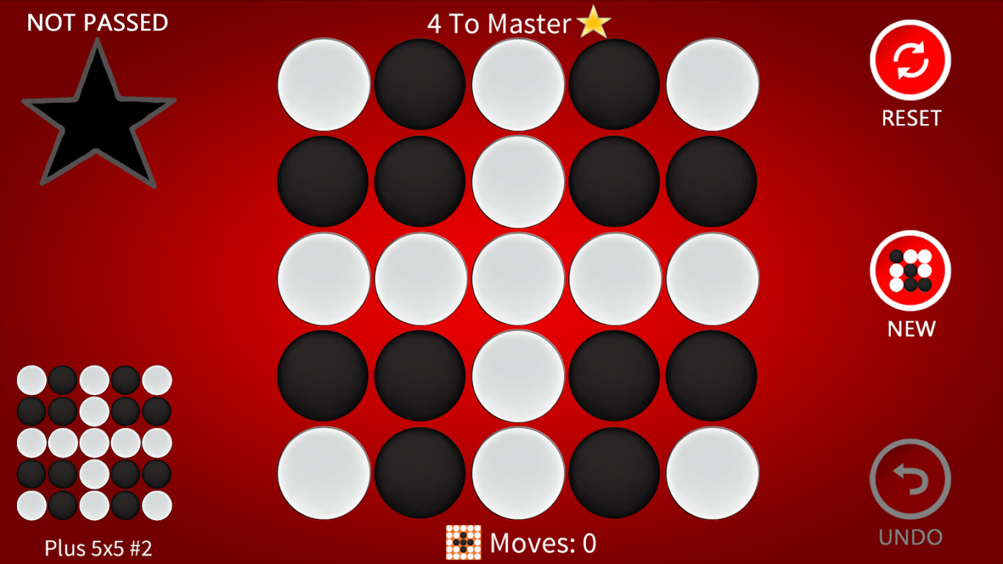 StoneFlips is similar to a lights out puzzle game, where you try to get all of the stones to be the same color.