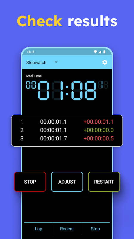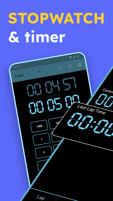 Populaire gratis digitale stopwatch en timer. Mooi, schoon.