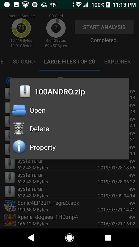*Since the difference after deletion processing is not reflected in the chart and disk usage gauge, please start analysis again.