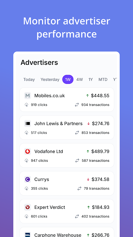 Met de mobiele dashboard-app van Strackr heb je eenvoudig toegang tot actuele affiliate marketingstatistieken en kun je je prestaties direct vanaf je smartphone volgen.