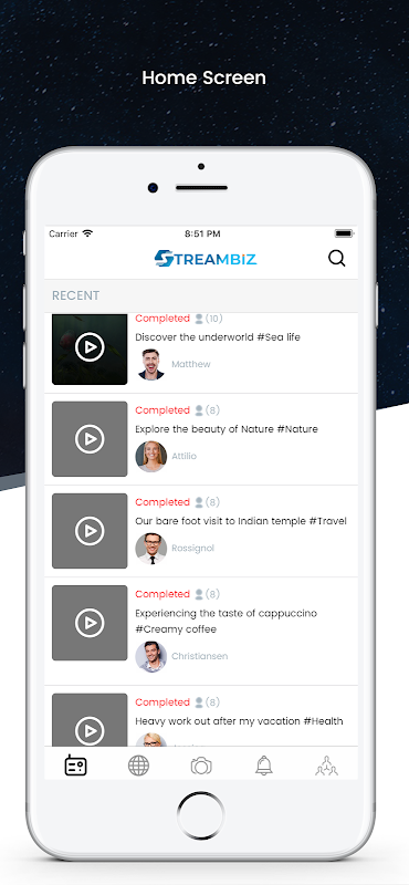 Met StreamBiz kun je de wereld ontdekken door middel van live streaming video's. Verken nieuwe locaties; verschillende locaties; ontmoet mensen en deel je liefde allemaal in live video. Communiceer met je favoriete mensen door gewoon live te reageren en ze een hart onder de riem te steken. Ontdek beroemde live videostreams van verschillende locaties over de hele wereld of zoek naar uitzendingen of op specifieke locaties. Maak je nooit druk over het missen van de video's, bekijk ze met de replay-functie. Wees live met StreamBiz.