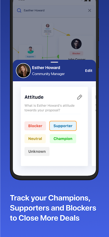 Stringboard helpt u meer hoogwaardige zakelijke verkoopdeals te winnen met interactieve visuele stakeholderkaarten. Beïnvloeders beheren en volgen; de belangrijke relaties tussen inkoopteamleden; en controleer de kantoorpolitiek om strategisch door complexe inkooporganisaties te navigeren, effectiever te verkopen en uw grootste zakelijke verkoopdeals sneller te sluiten.