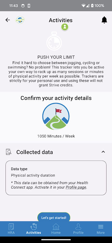 Strive geeft je toegang tot een gezondheidsbeoordeling die je binnen een paar minuten kunt invullen. Vervolgens krijg je aanbevelingen en mogelijkheden om positieve veranderingen in je levensstijl aan te brengen. Kom in actie door deel te nemen aan eenvoudige en leuke trackers.