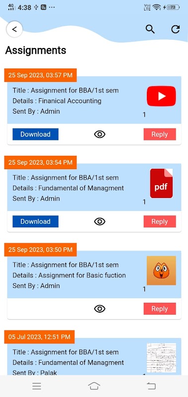 De mobiele applicatie voor studenten geeft ouders toegang tot de academische gegevens van hun afdelingen, zoals: dagelijks en vorige dagen huiswerk, aanwezigheid, mededelingen, circulaires, gegevens over ongedisciplineerd gedrag, fotogalerij van de universiteit, brievenbus (waarmee de gebruiker kan communiceren rechtstreeks met de administratie van het college/instituut).