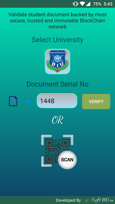 Verifieer nu uw certificaat op je gsm in Block-chain netwerk. Student Document Verification is een mobiele applicatie voor gebruikers om te controleren en te controleren of de authenticiteit van hun academische certificaten. De gebruiker hoeft alleen maar de applicatie te downloaden en het zal klaar om te gebruiken als het geen login of wachtwoord nodig zijn.
