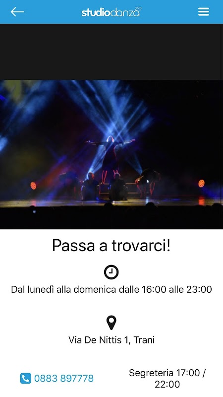 StudioDANZA nasce dalla volontà costante di creare una realtà seria e rivoluzionaria dove la Danza viene minuziosamente studiata ed approfondita sia con i Fondatori sia con tanti professionisti di livello internazionale che costantemente si alternano nei vari programmi formativi: URBAN-movement, DANCE-movement, LATIN-movement.