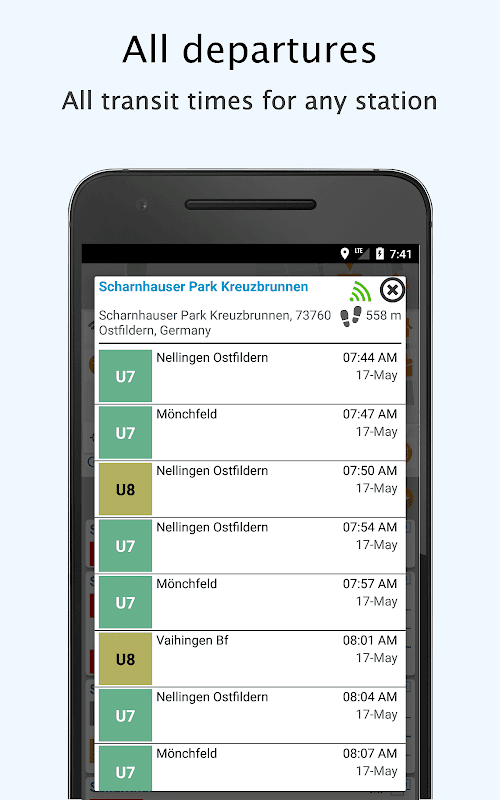 Bekijk overal vertrektijden – zelfs in de metro of tijdens roaming. De gegevens worden regelmatig vernieuwd, zodat je er altijd op kunt vertrouwen.