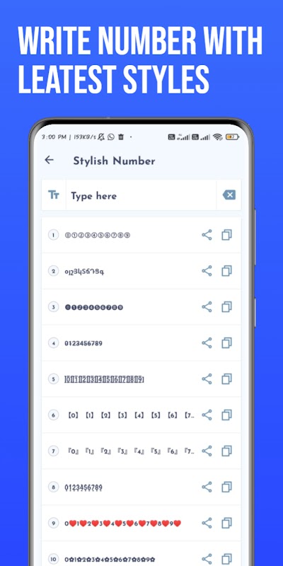 Stylish Text app allows you to write stylish text using the cool & fancy fonts. With this application, you can write any text with different font styles and decorate it with different symbols items like heart, stars and other decorative