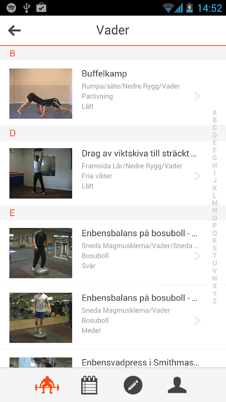 Styrkeprogrammet innehåller 700 träningsövningar med video och utförliga beskrivningar sorterade på muskelgrupp och övningstyp.