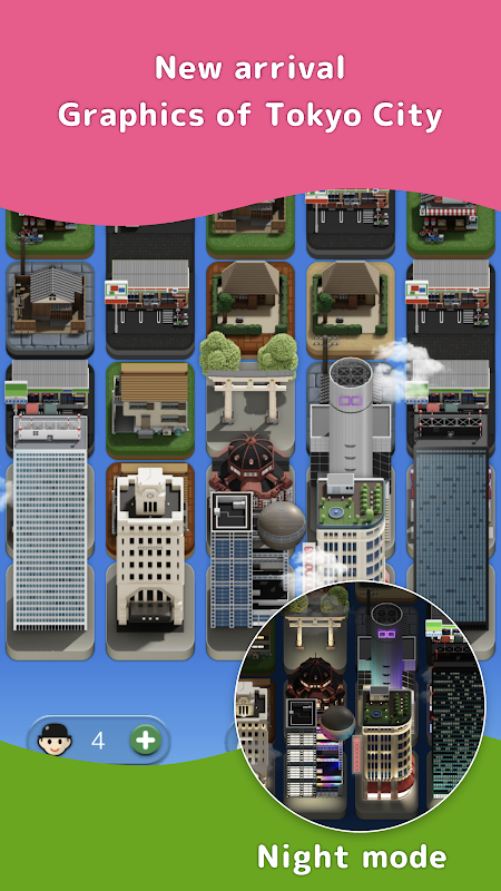 Door blokken van dezelfde kleur aan te raken, worden ze samengevoegd en naarmate ze hoger komen te staan, veranderen ze in grote gebouwen.