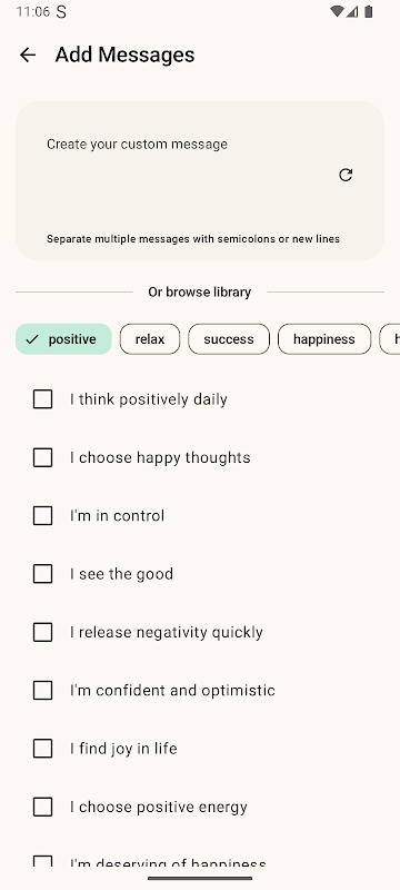 Neem de controle over je leven en pas nu je eigen berichten aan. Met onze app kun je een onbeperkt aantal berichten toevoegen die gedurende de dag op je scherm worden weergegeven. Gebruik de kracht van je onderbewustzijn en transformeer je leven vandaag nog!