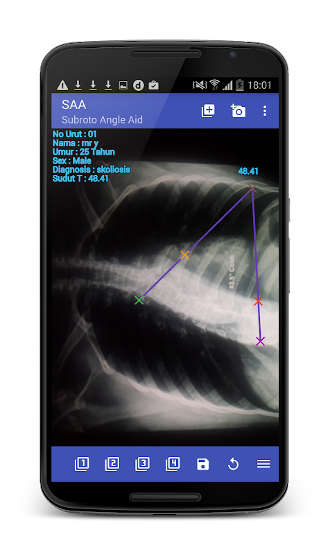 Subroto Angle Aid (SAA), een applicatie die kan worden gebruikt om de hoek van scoliose kromming en draaiing van het montage bevestigingstoestellen scoliose van de wervelkolom te meten met de werkwijze Cobb met behulp kopie zachte foto röntgenstraal is gebruiksvriendelijk, snel, nauwkeurig en betaalbaar.