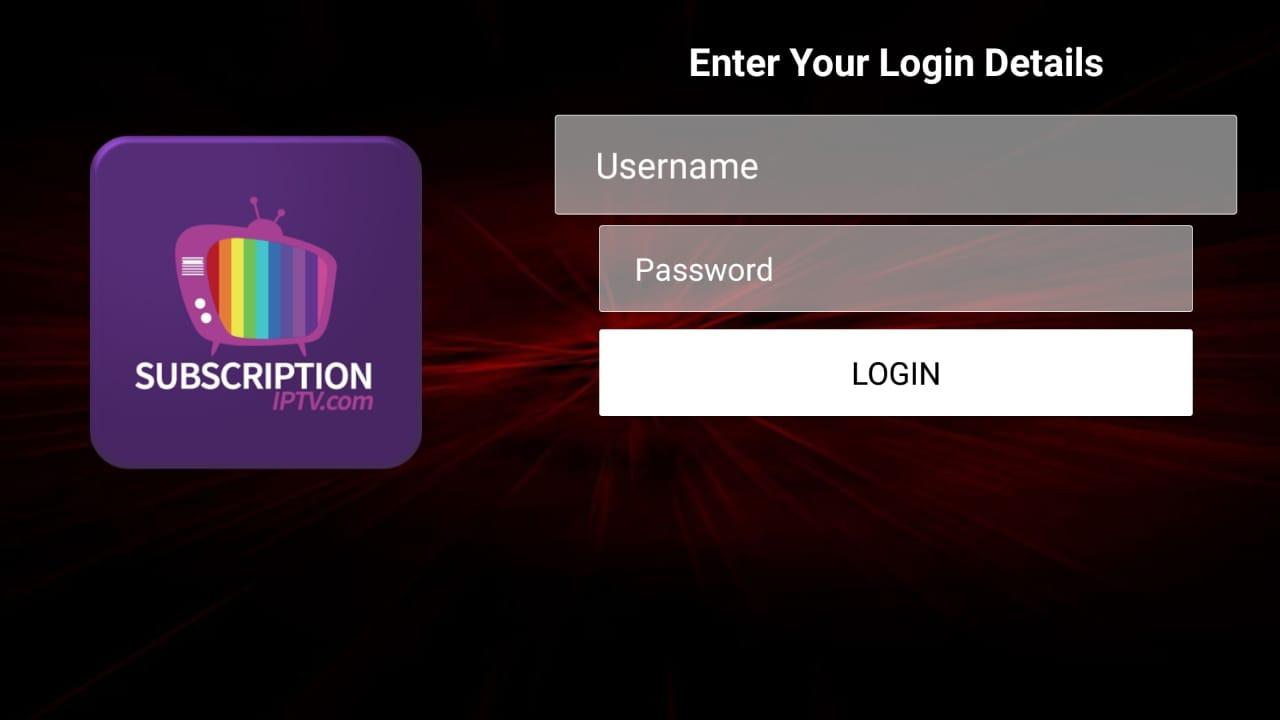 ANNOTATION IMPORTANTE: Vous devrez entrer votre nom d'utilisateur, votre mot de passe de votre abonnement Subscription IPTV PRO pour pouvoir utiliser cette application.