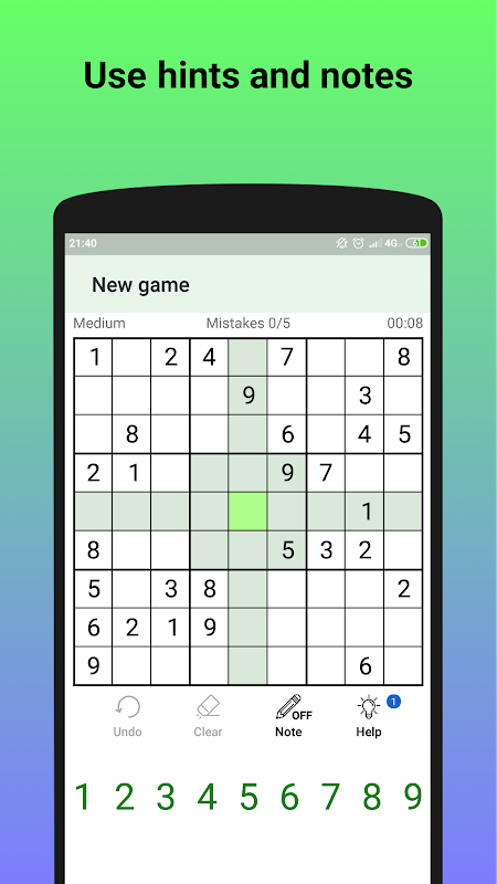 Klassieke sudoku voor beginners en gevorderden. Of je nu wilt ontspannen of je geest actief wilt houden - breng de tijd op een plezierige manier door met het sudoku-vrije puzzelspel! Neem een kleine stimulerende pauze of maak je hoofd leeg! Neem je favoriete getallenspel overal mee naartoe. Sudoku is offline beschikbaar. Het spelen van deze gratis sudoku-puzzel op mobiel is net zo goed als het gebruik van een echt potlood en papier.