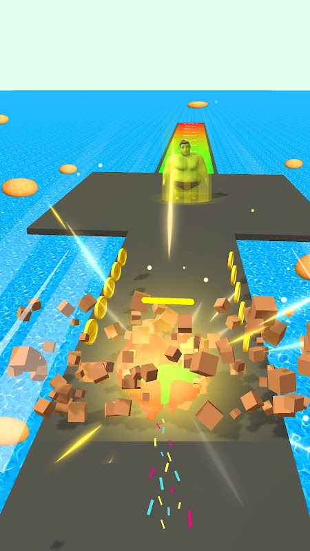 Rush and eat foods to turn skinny body to giant and crush obstructive sumo.