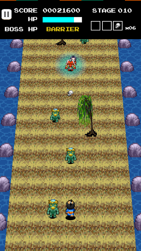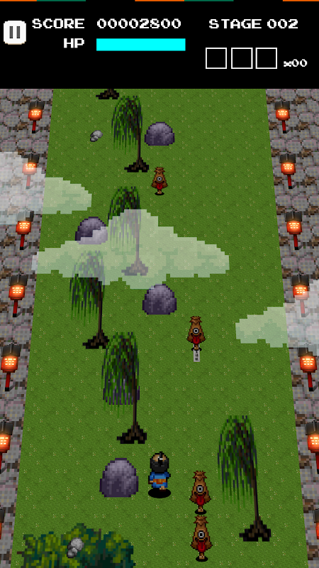 Je moet monsters vermijden of verslaan met stenen die monsters van bovenaf richting samurai komen. Om te rennen en stenen op de weg te rapen, gaan we naar de laatste fase.