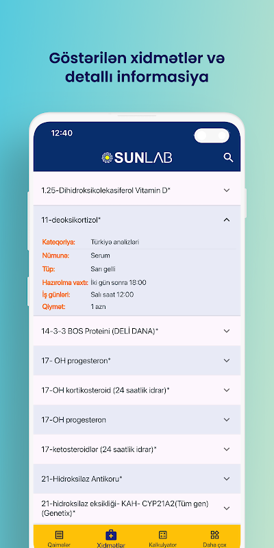 Sunlab mobiele applicatie is de eerste mobiele laboratoriumapplicatie die in het land is gelanceerd. De applicatie is in de eerste plaats bedoeld voor artsen en individuele patiënten. Met behulp van deze applicatie hebben artsen de mogelijkheid om de resultaten van hun patiënten online en de algemene database van diensten, evenals prijzen voor diensten, te openen, te volgen en te leren. Bovendien kunnen artsen de resultaten en de lijst met vereiste tests en prijzen delen met hun patiënten, vooral via WhatsApp en e-mail.