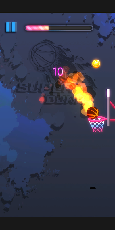 你需要通过各花样的进球方式来取得高分, 空心球, 篮板球, 压哨球, 都是不错的进球方式. 连续几次花式进球, 你的篮球就会变成一团燃烧的火焰.